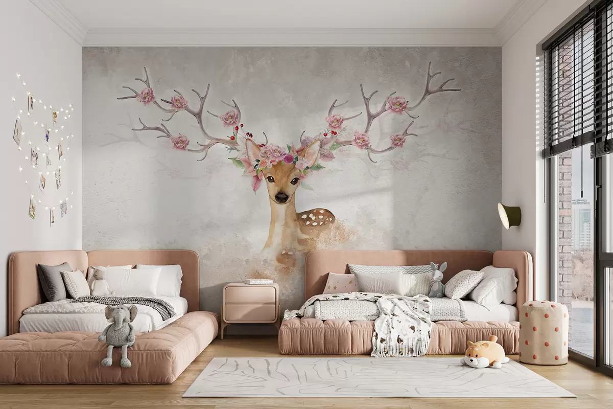 Fototapeten Hirsch mit Blumen am Geweih Nr. u04671