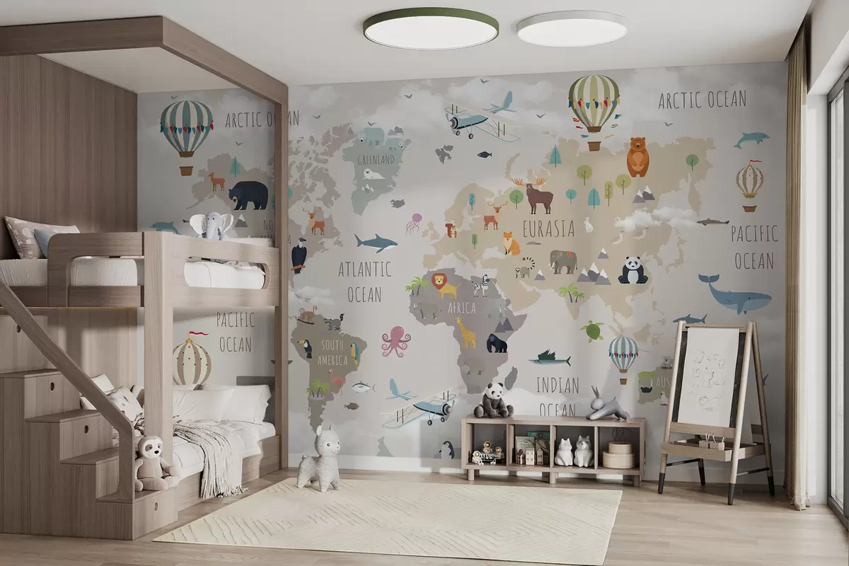 Fototapeten Weltkarte mit Tieren und Luftballons Nr. u96461
