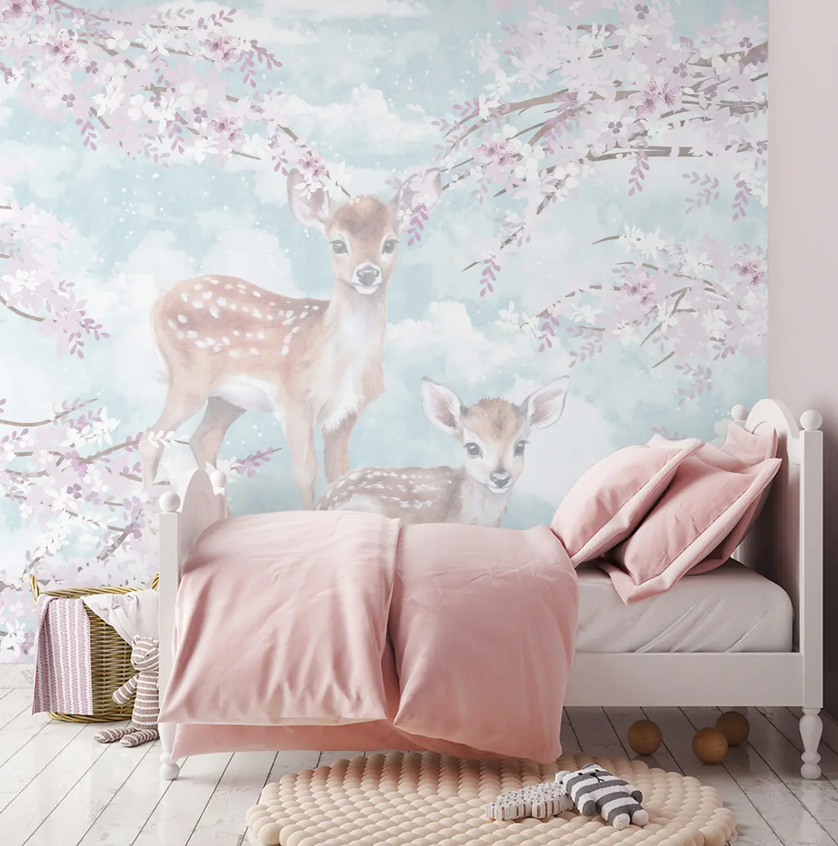 Fototapeten Kitze zwischen blühenden Bäumen Nr. u97464