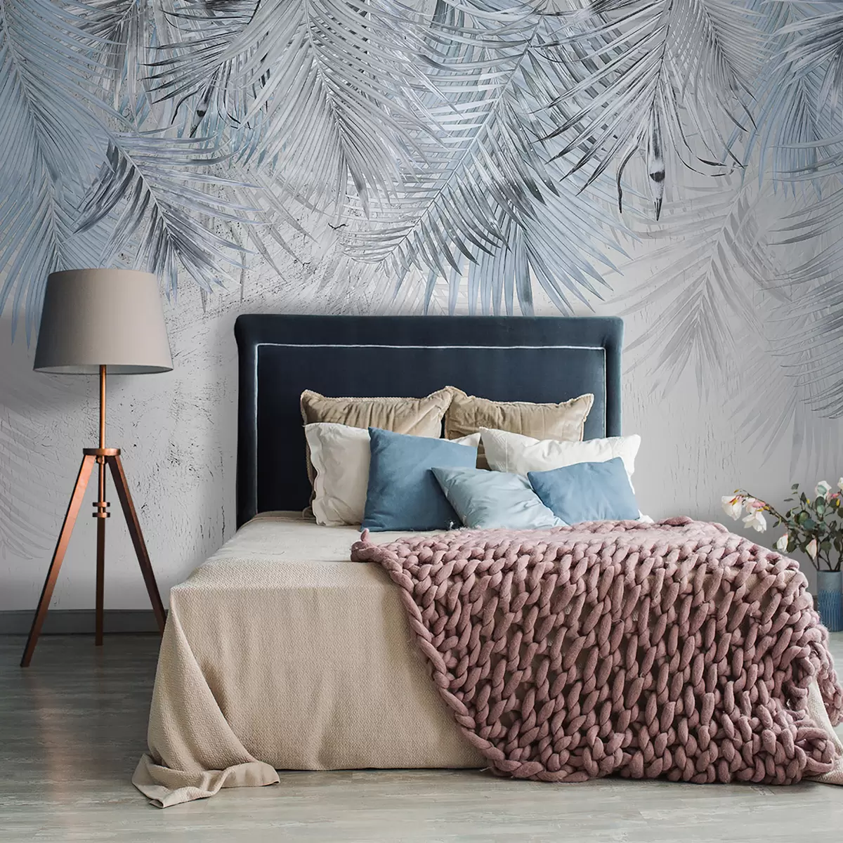 Fototapeten Blaue tropische Blätter im Grunge-Stil Nr. u93843v3