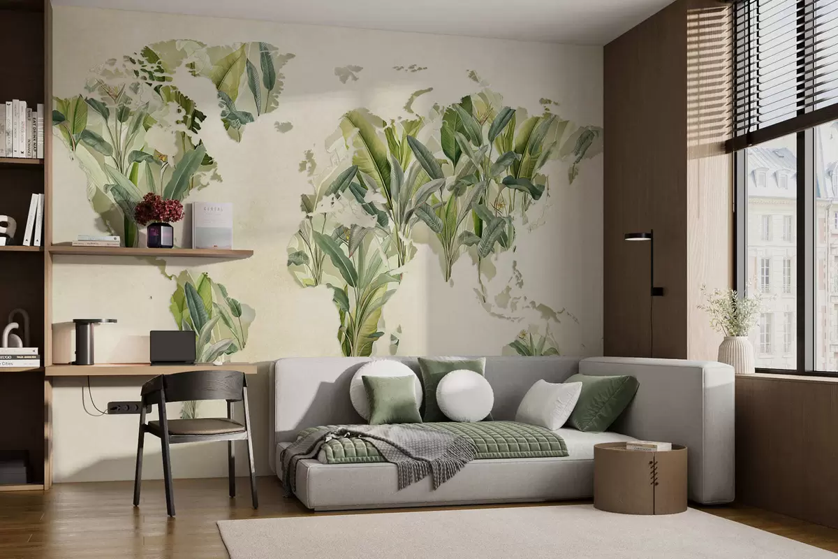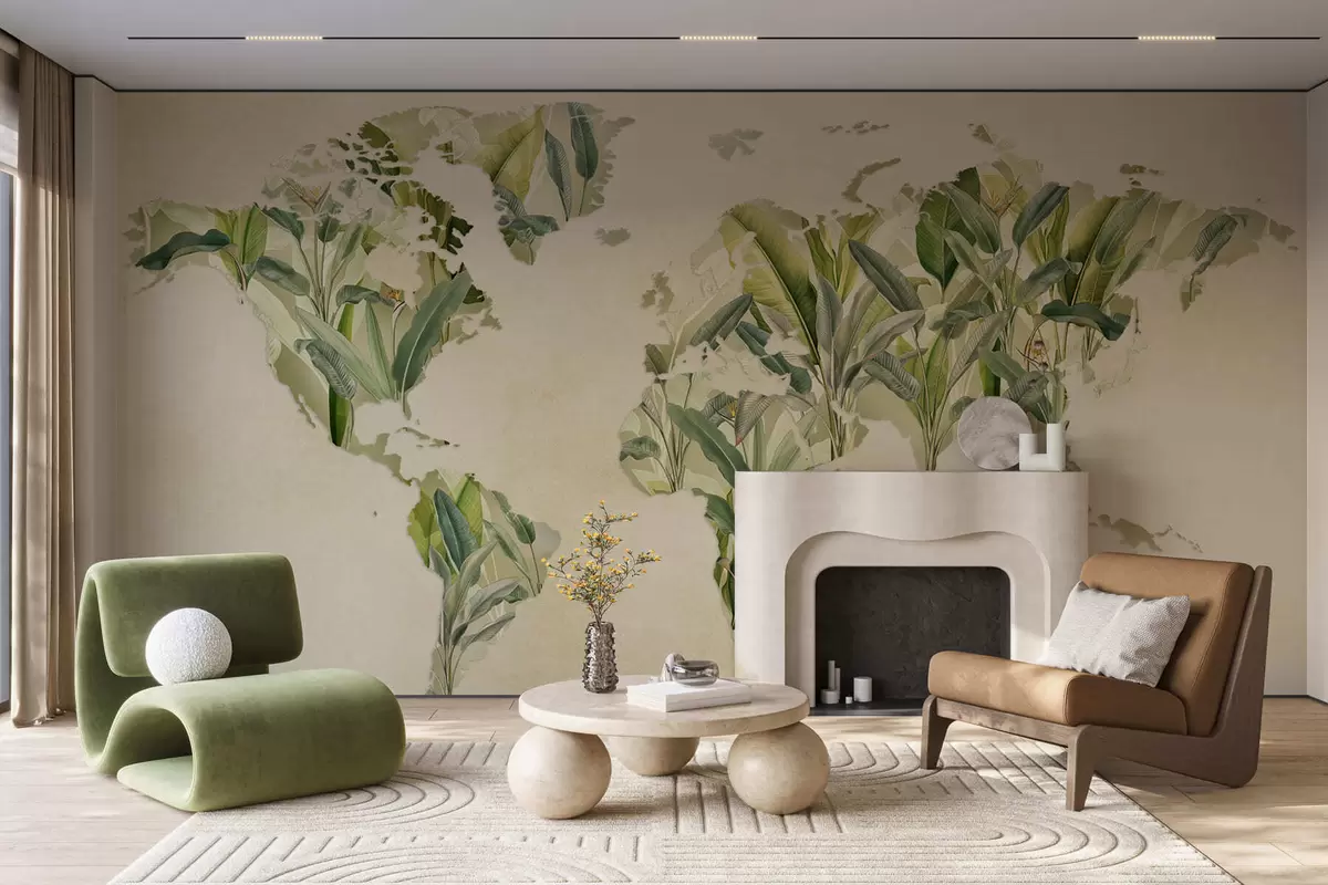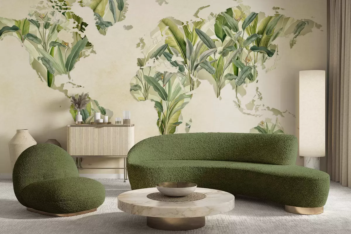 Fototapeten Eine grüne Weltkarte aus Bananenblättern Nr. c00007