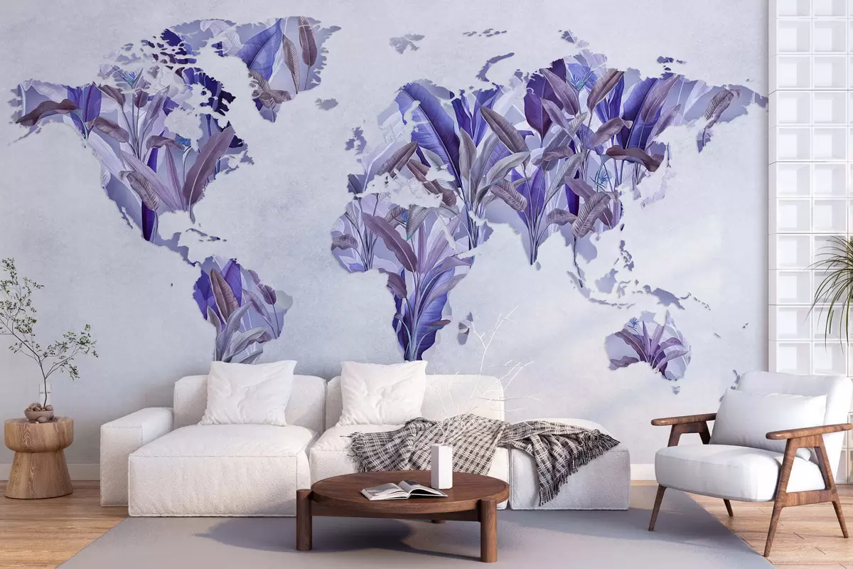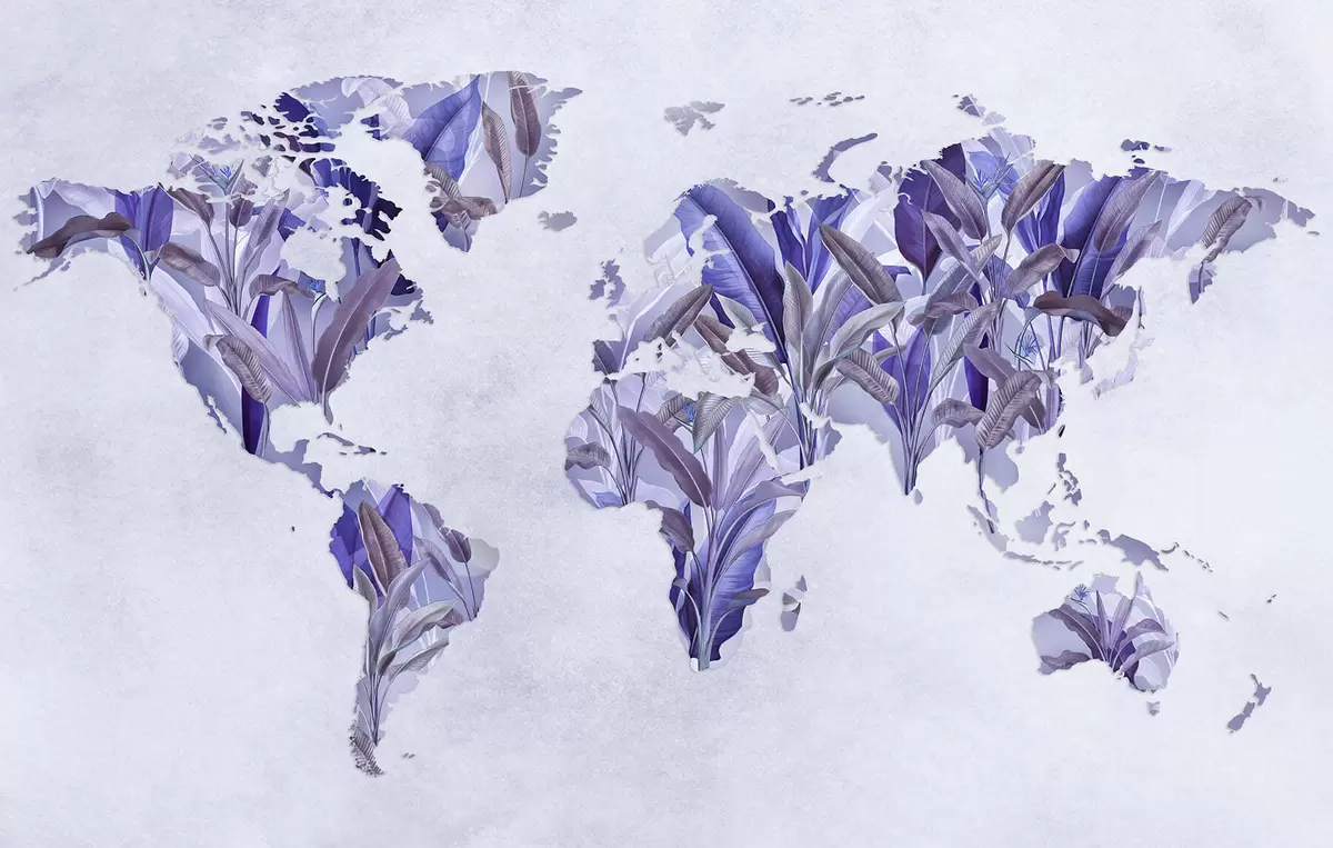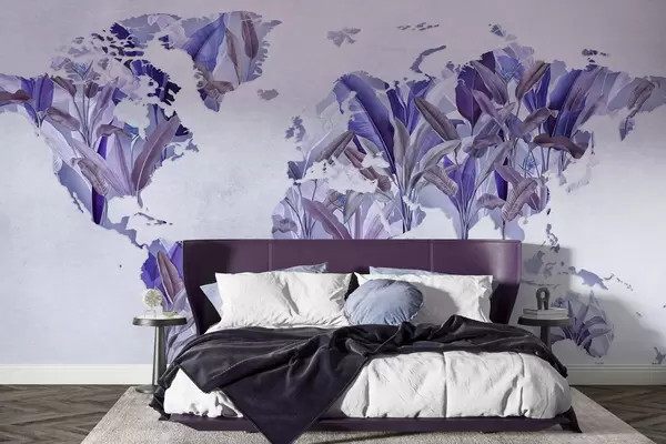 Fototapeten Eine violette Weltkarte aus Bananenblättern Nr. c00007v1