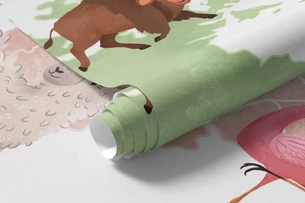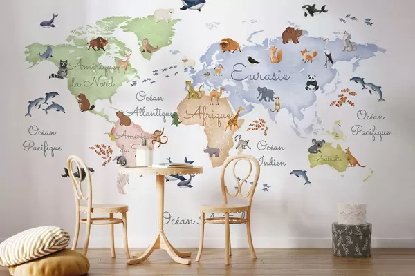 Fototapeten Eine Farbkarte im Aquarellstil mit Tiermotiven. Beschriftungen auf Französisch Nr. c00012fr