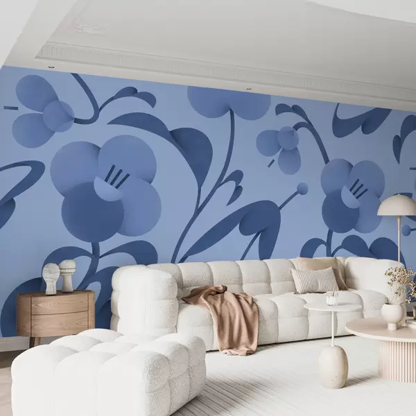 Fototapeten Botanischer Druck mit dekorativen Blumen in Blau Nr. u99196v8