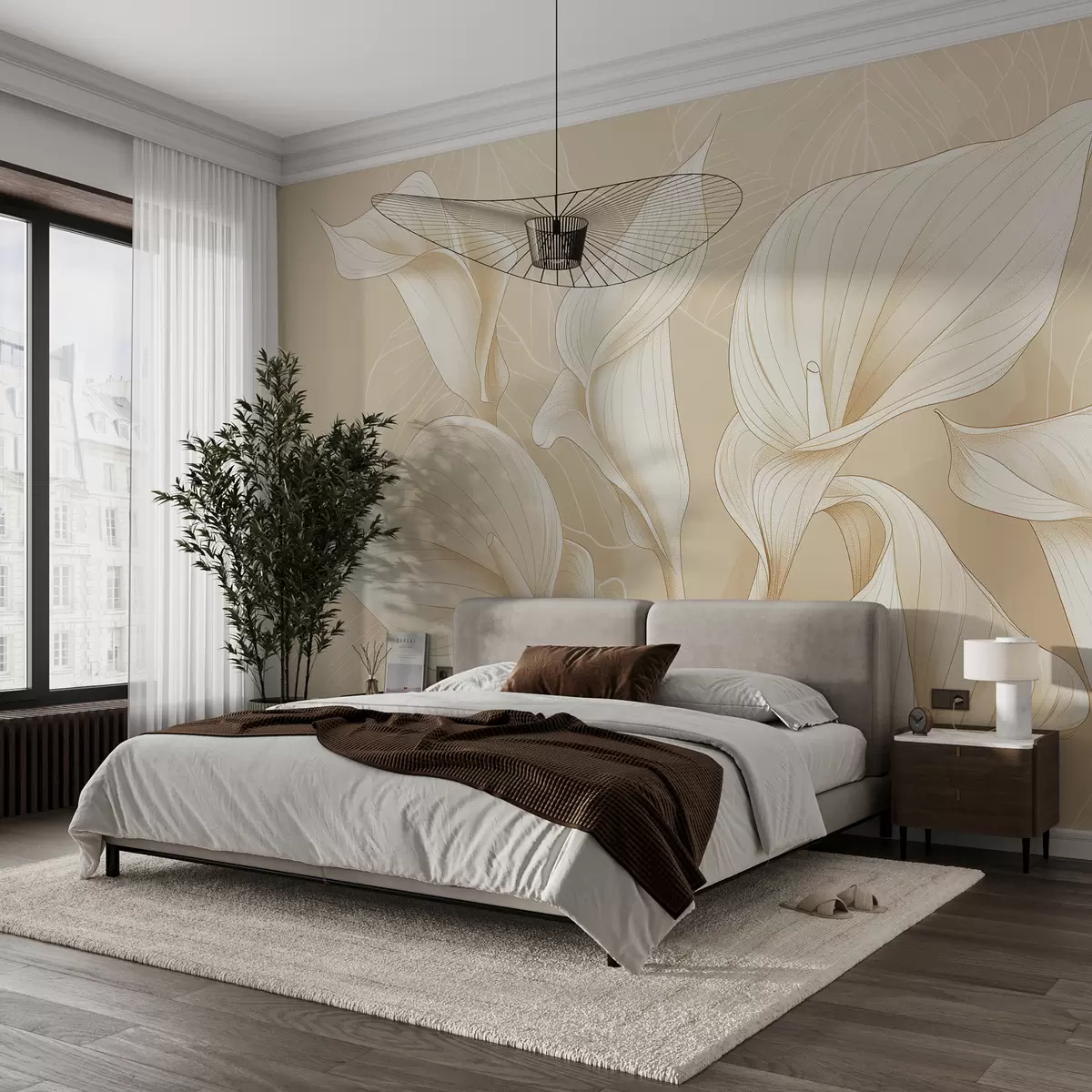 Fototapeten gezeichnete Calla-Blüten auf beigem Hintergrund Nr. w01197