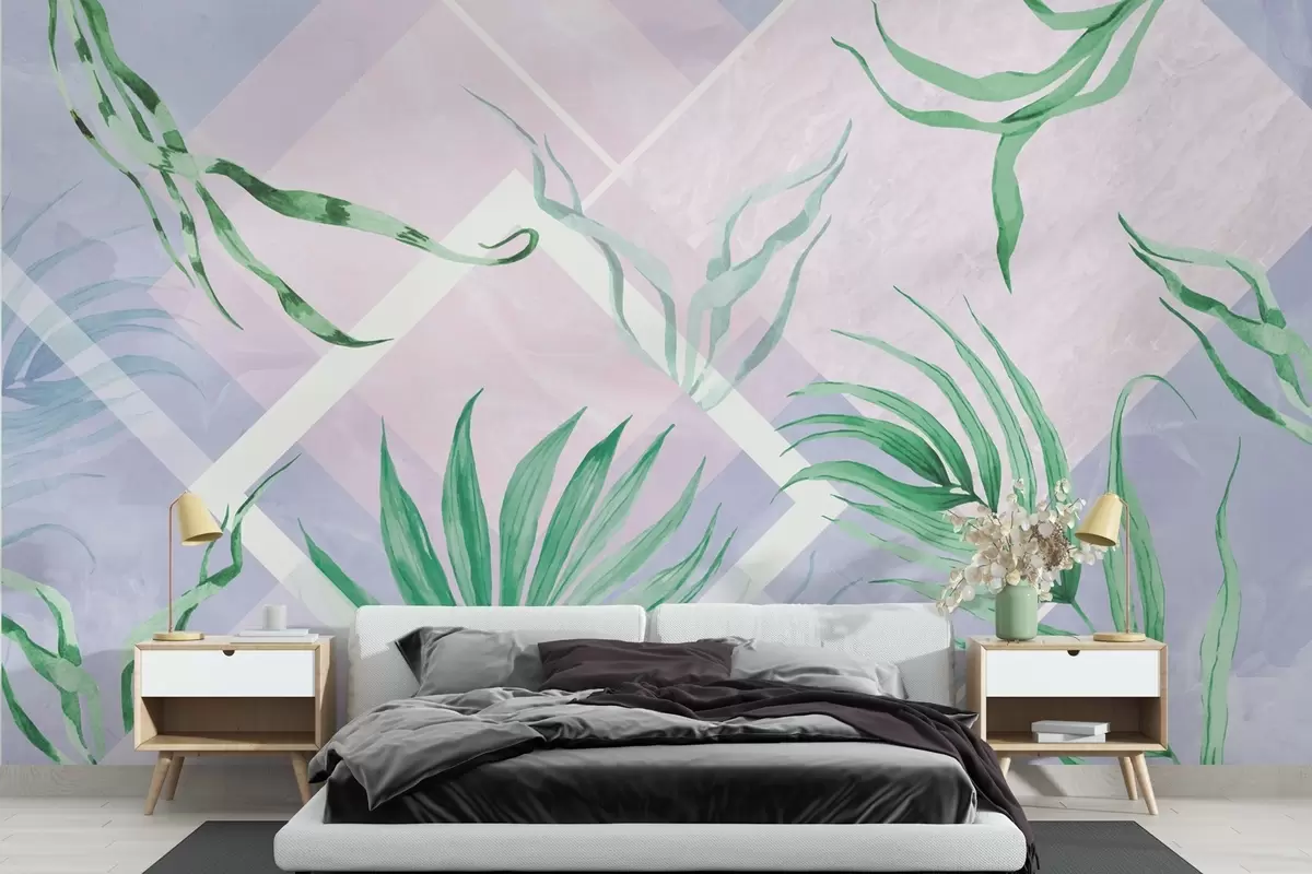 Fototapeten Üppiges Grün vor sanftem Pastellhintergrund Nr. w01625