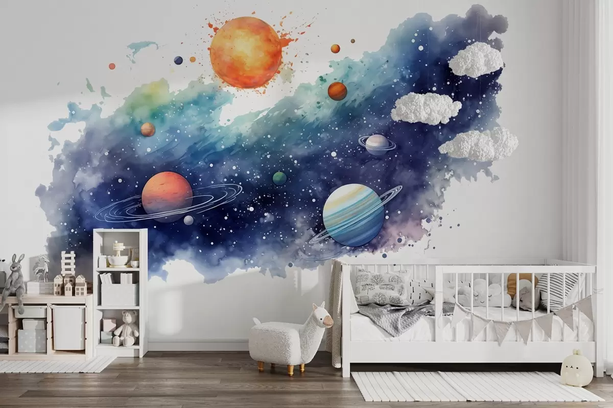 Fototapeten Aquarell Raum, Planeten, Sonne, Sterne Nr. w01803