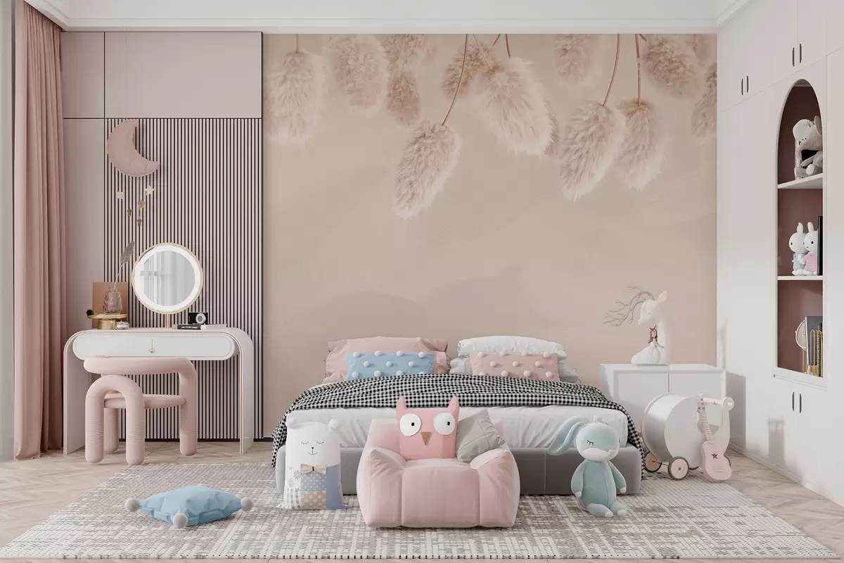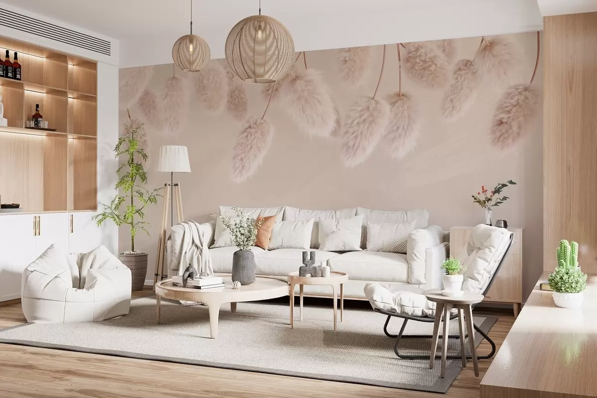 Fototapeten Sanfte Laguruswolken vor einem Hintergrund aus zartrosa Strichen Nr. w02071