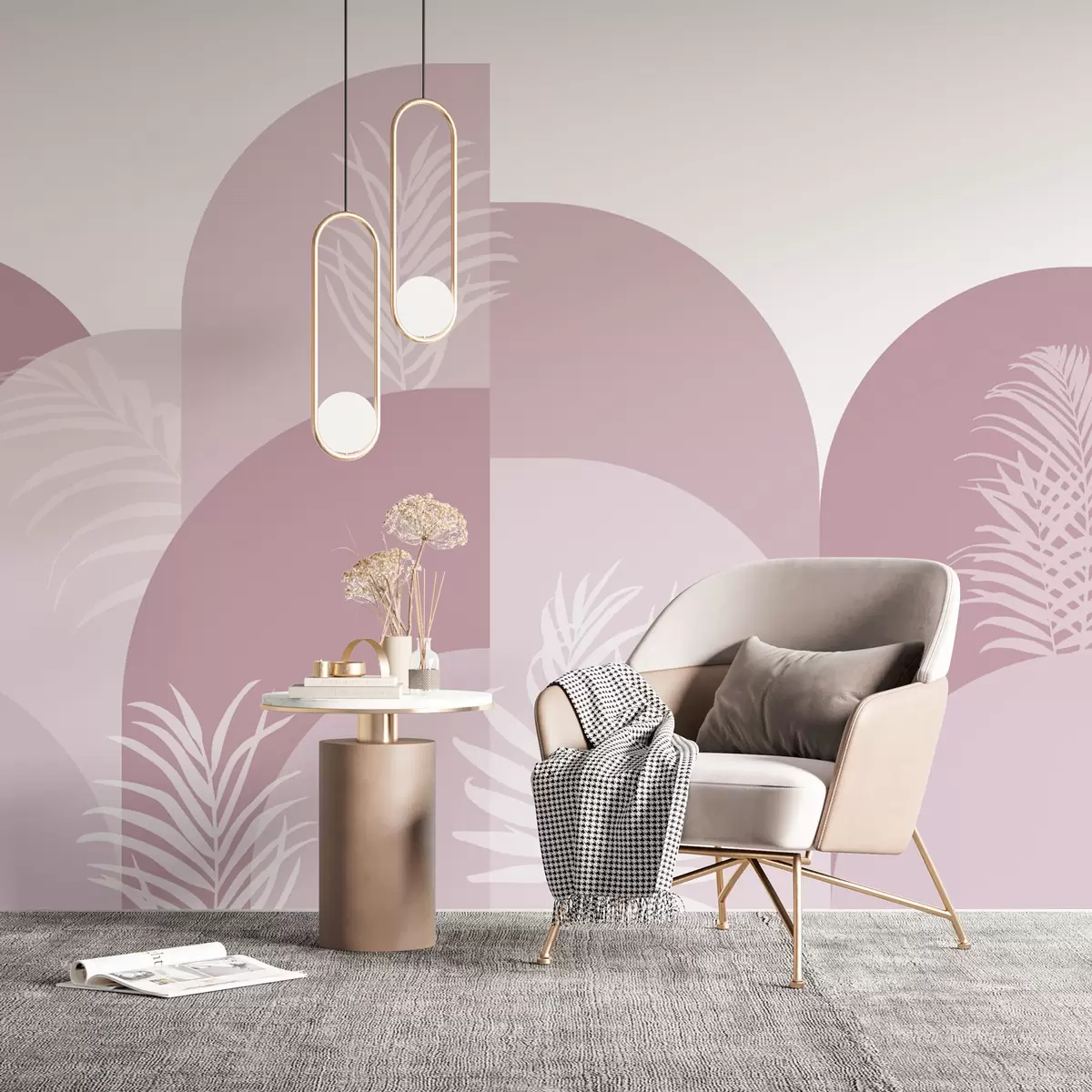 Fototapeten Trendy Bögen mit tropischen Blättern rosa Farbe Nr. w02101v4