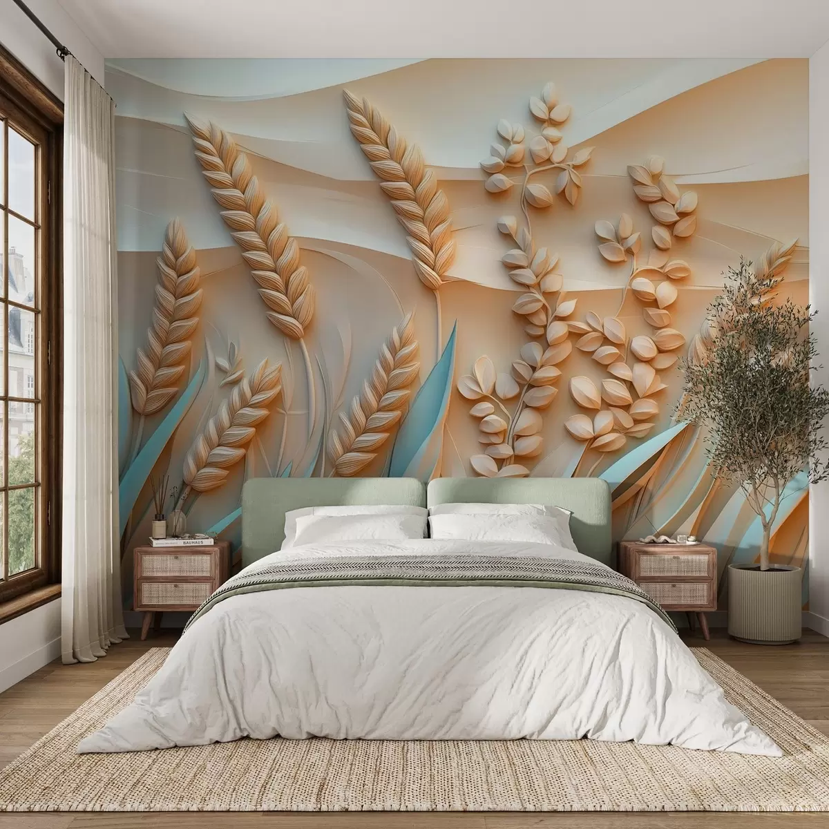 Fototapeten Weizenwuchs in einem geprägten Stil in zarten Farben Nr. w02147