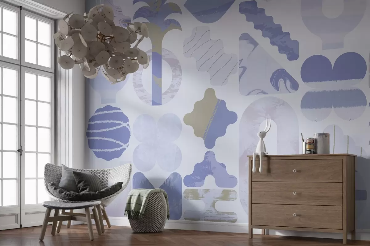 Fototapeten verschiedene interessante Formen, moderne Geometrie in Blautönen Nr. w02550v1