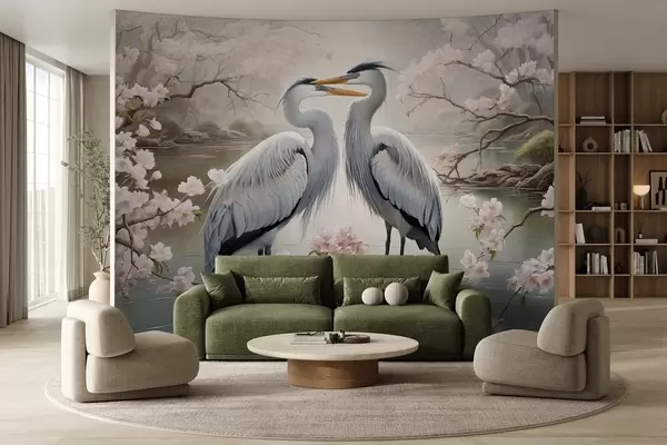 Fototapeten Ein Storchenpaar in einem blühenden Garten Nr. w02621