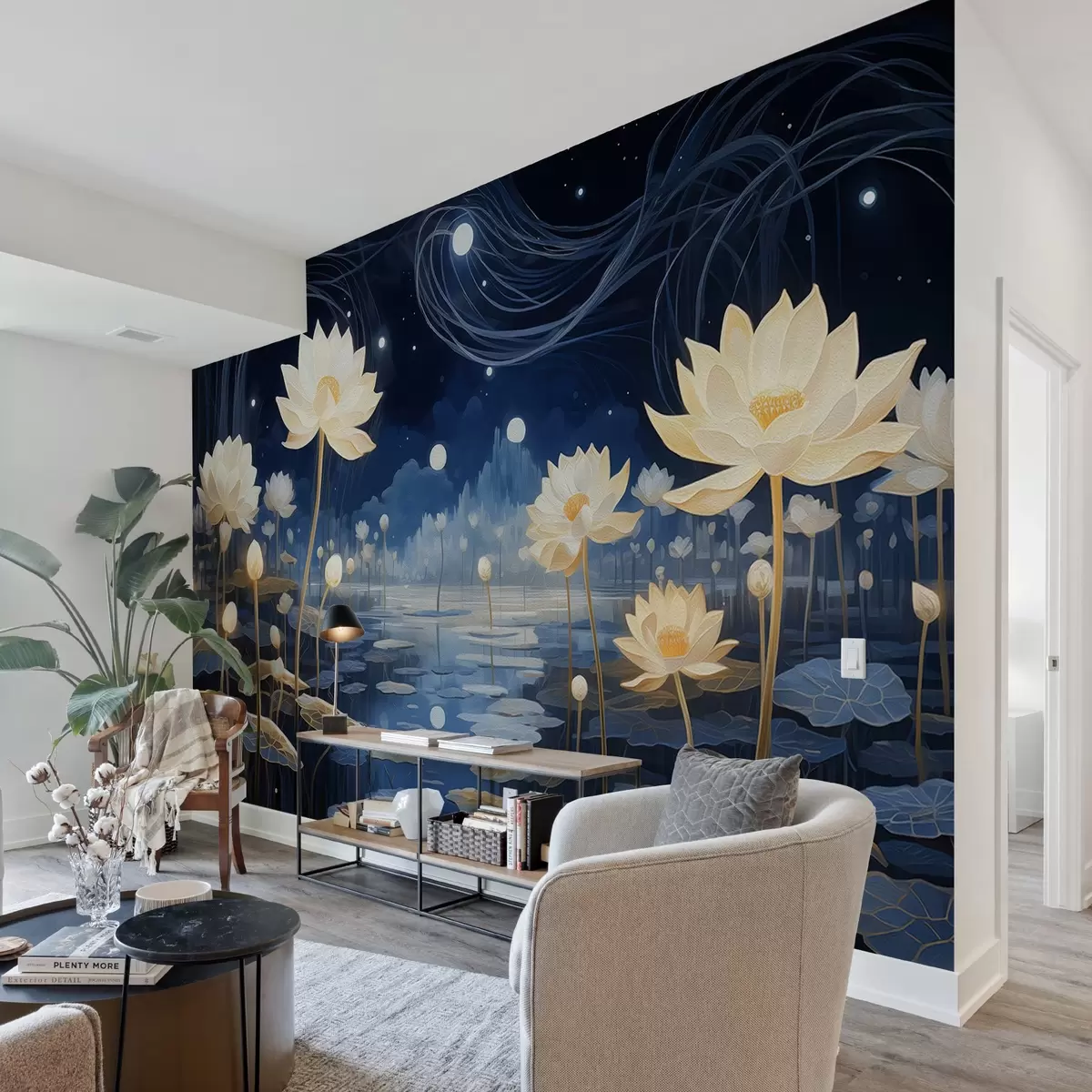 Fototapeten Ölgemälde Lotusblumen bei Nacht Nr. w02848