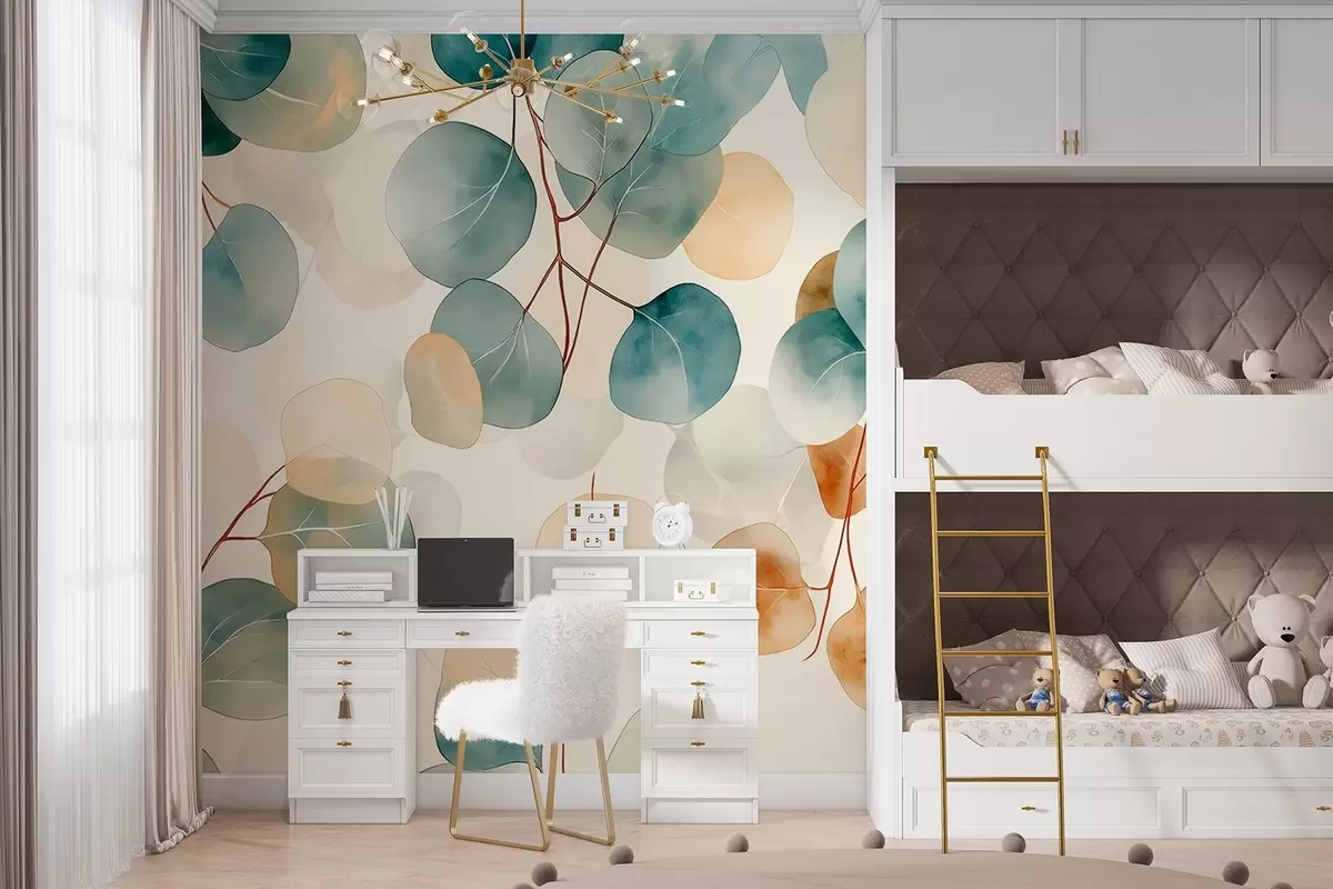 Fototapeten Aquarell-Stil Eukalyptus Zeichnung, weiche Pastellfarben, floral Nr. w02938