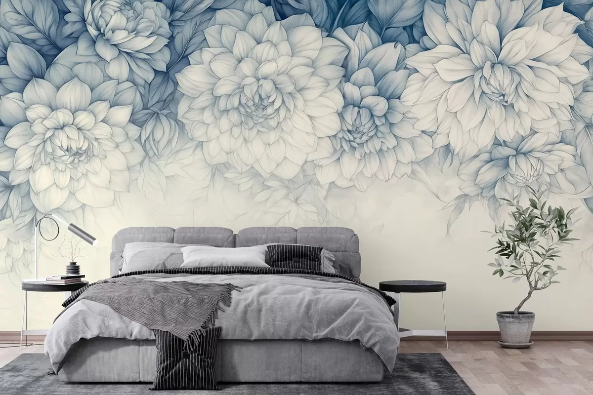 Fototapeten üppige einfarbige Chrysanthemen, die von der Spitze hängen Nr. w03110