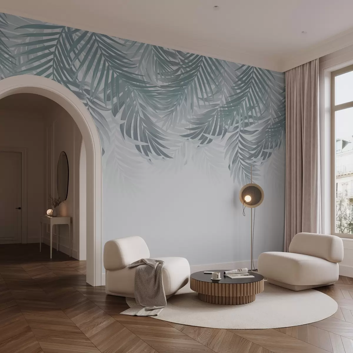 Fototapeten Türkisfarbene Palmenblätter von oben Nr. w03294v1