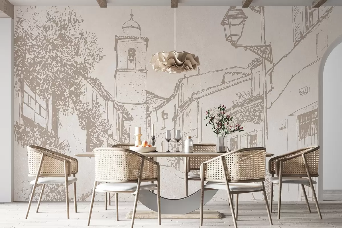Fototapeten Stadt Straße, schöne Architektur, Gebäude, Mittelmeer, beige Farben Nr. w03346