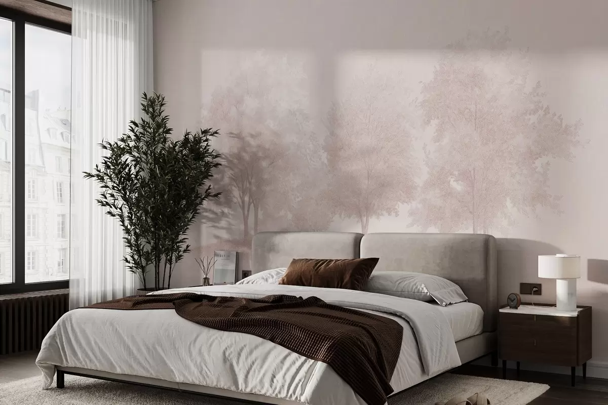 Fototapeten Blossom Bäume, Frühling, Bleistift-Stil Zeichnung, rosa Farben, Natur Nr. w03549