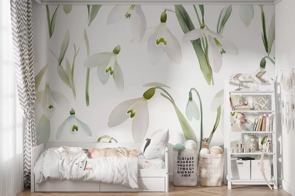 Fototapeten Schneeglöckchen Blumen in Aquarell-Stil, natürliche Farben Nr. w03754