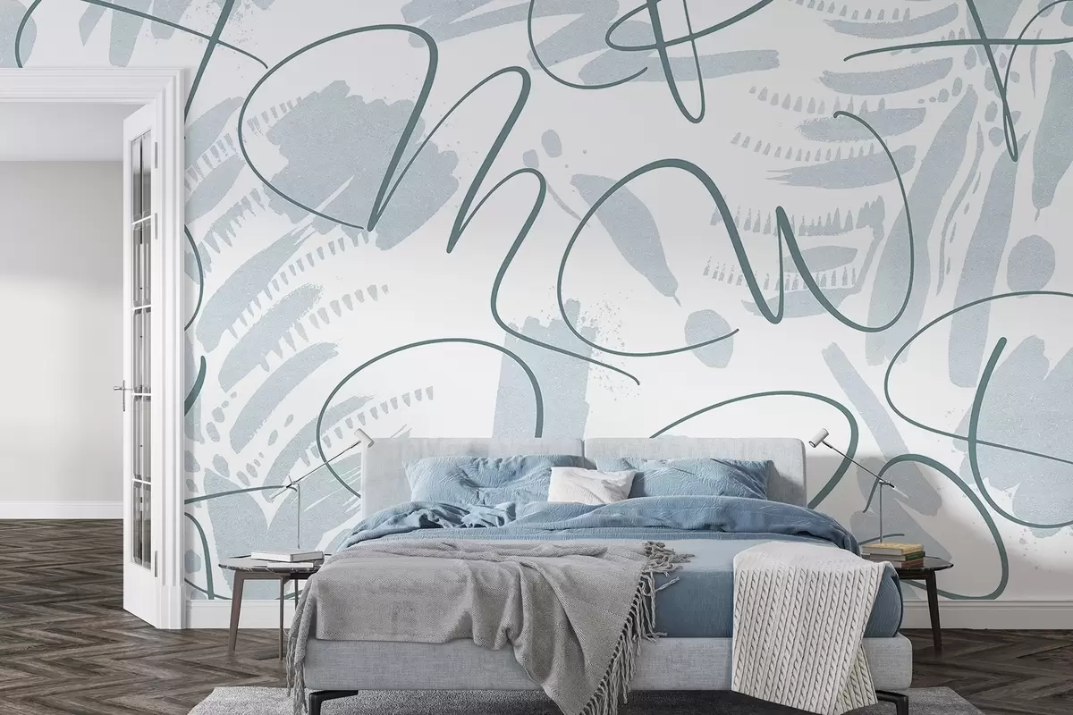 Fototapeten Kalligraphische Abstraktion mit Buchstaben, Pinselstrichen, blauer Farbe Nr. w03913v1