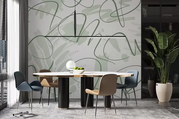 Fototapeten Kalligraphische Abstraktion mit Buchstaben, Pinselstrichen, grüner Farbe Nr. w03913v3