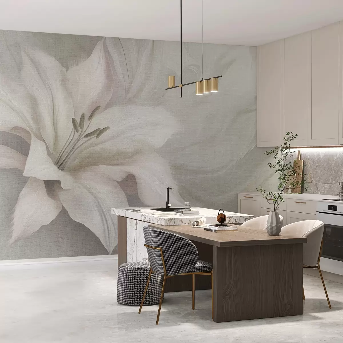 Fototapeten Lilie Blume Flüssigkeit Abstraktion, floral, graue Farben Nr. w04006v2