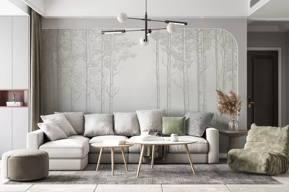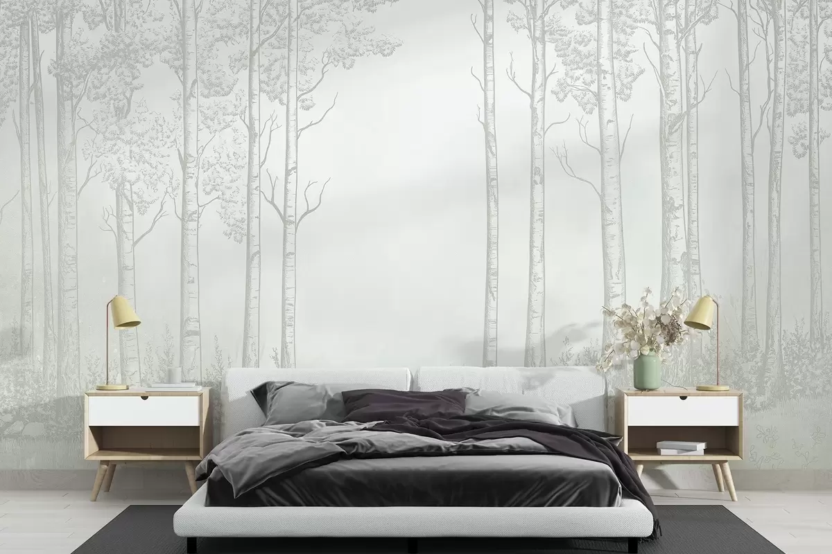 Fototapeten Wald mit Birken, Minimalismus, Natur, grüne Farbpalette Nr. w04009v1
