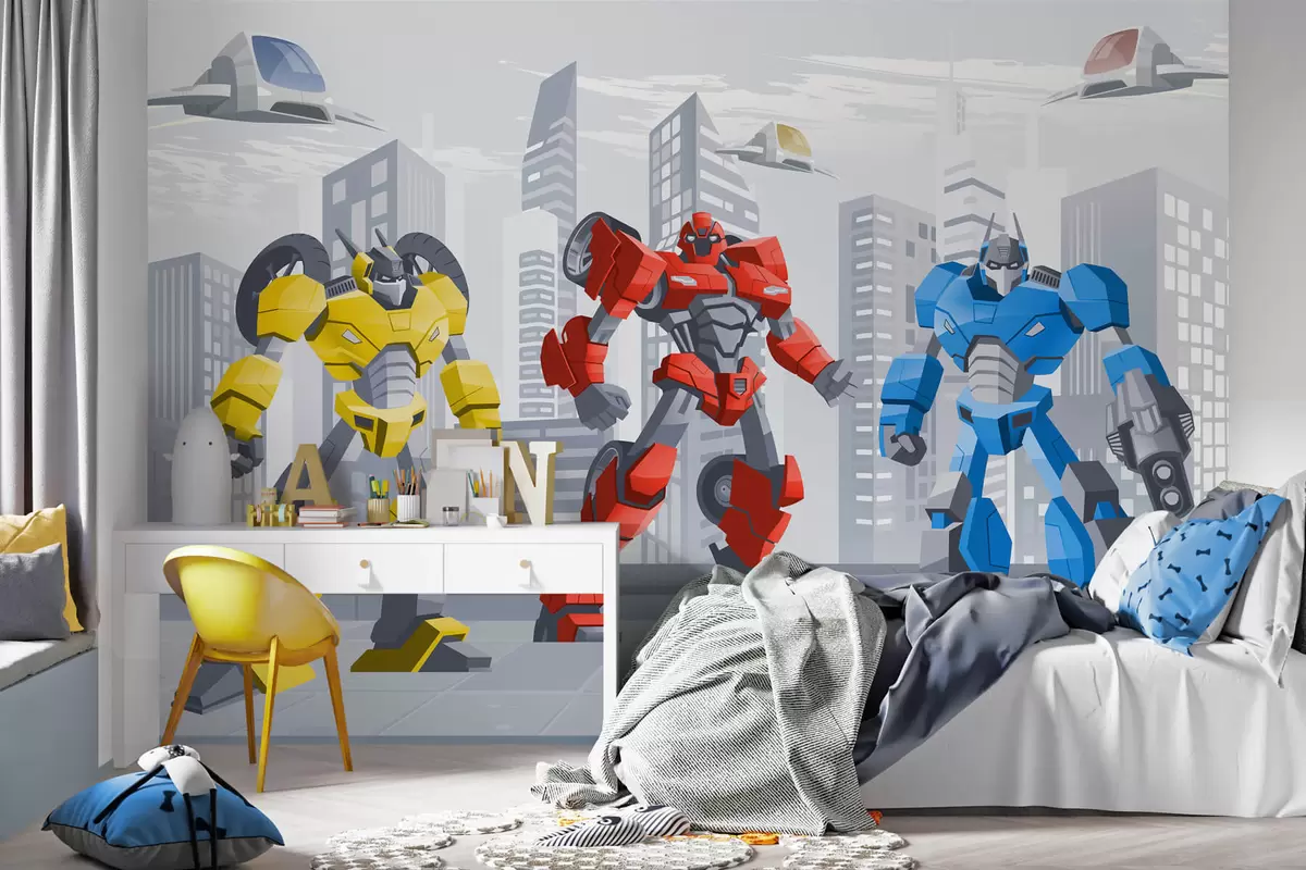 Fototapeten Transformationsroboter vor der Kulisse einer monochromen Stadt Nr. w04012