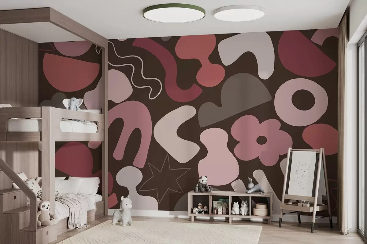 Fototapeten Geometrische Figuren, jugendlich, Abstraktion, dunkler weinroter Hintergrund Nr. w04067