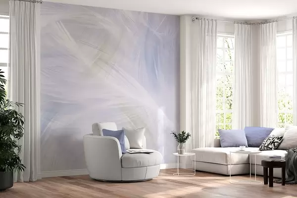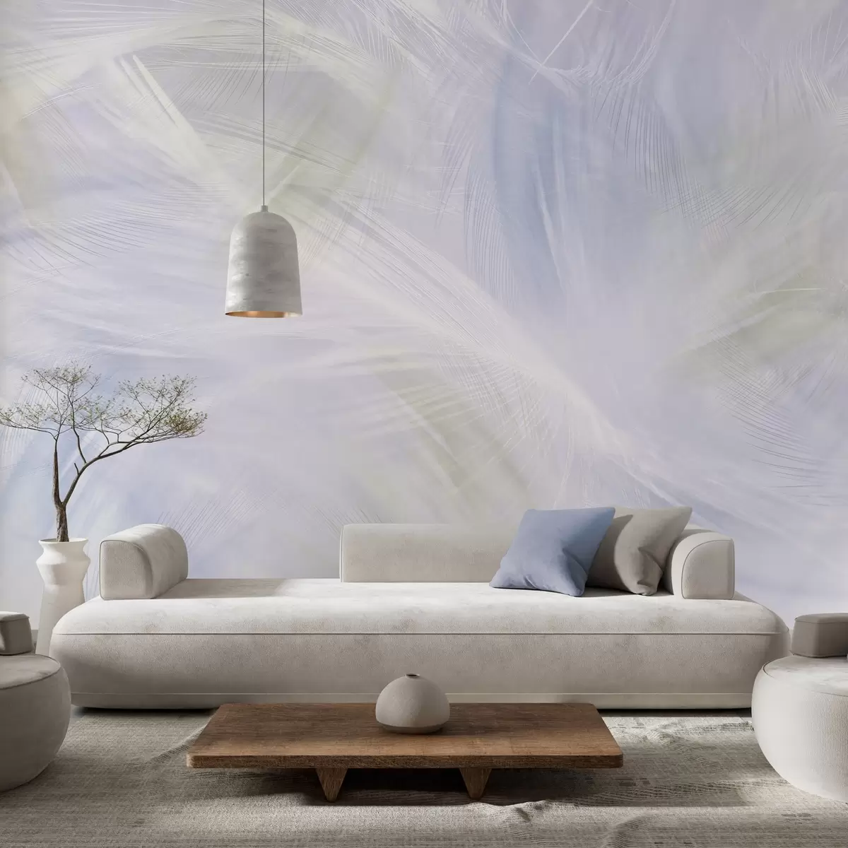 Fototapeten luftige Federn in Beige- und Blautönen Nr. w04071v1