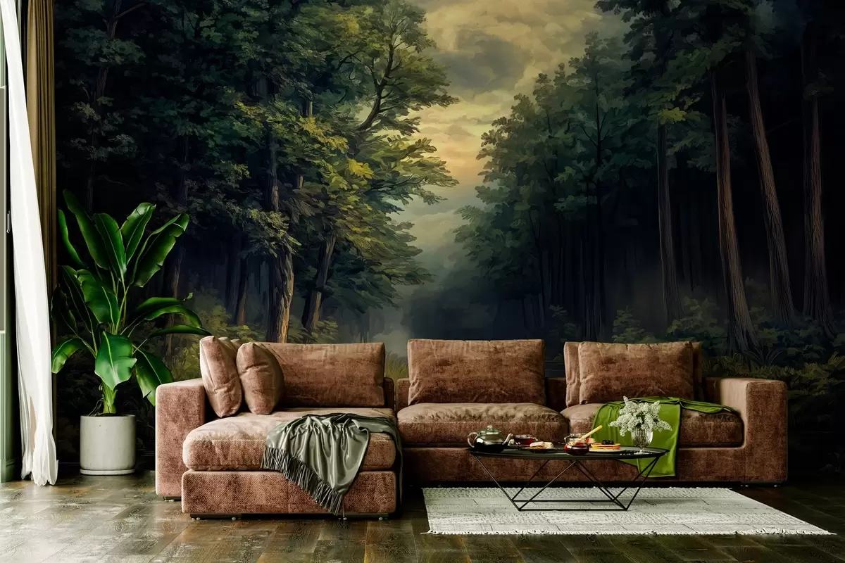 Fototapeten Wald mit Hirsch und Fluss im Stil der holländischen Ölmalerei Nr. w04072