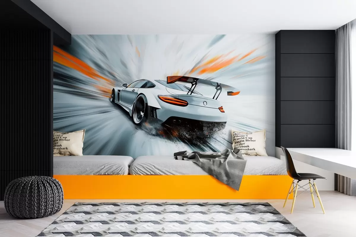 Fototapeten ein dynamischer Sportwagen, der durch den Raum rast Nr. w04074