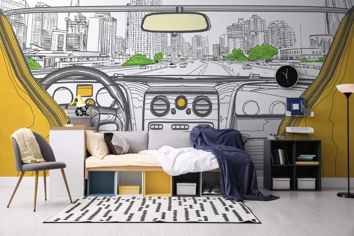 Fototapeten Konturansicht aus einem Auto Nr. w04109