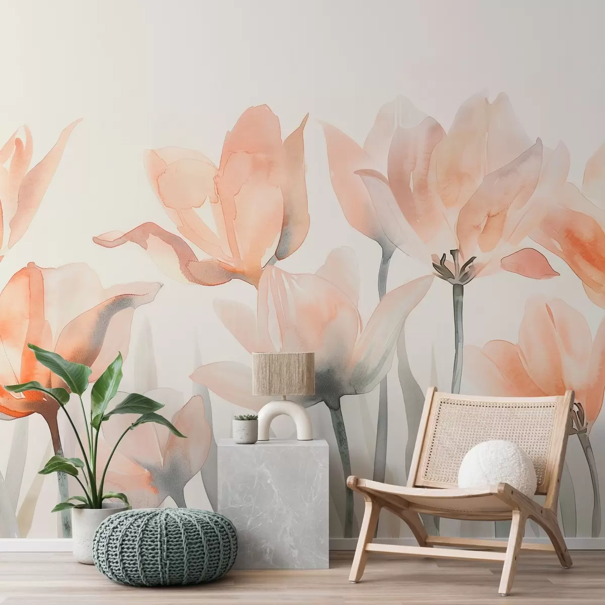 Fototapeten frische Aquarelltulpen, die von unten wachsen Nr. w04204