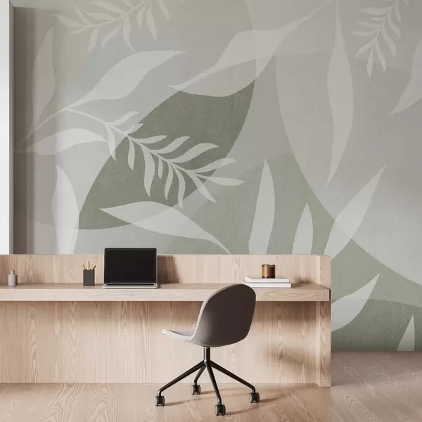 Fototapeten Silhouetten von Zweigen auf einem Hintergrund von abstrakten Kreisen, Schattierungen von Grün Nr. w04270v2