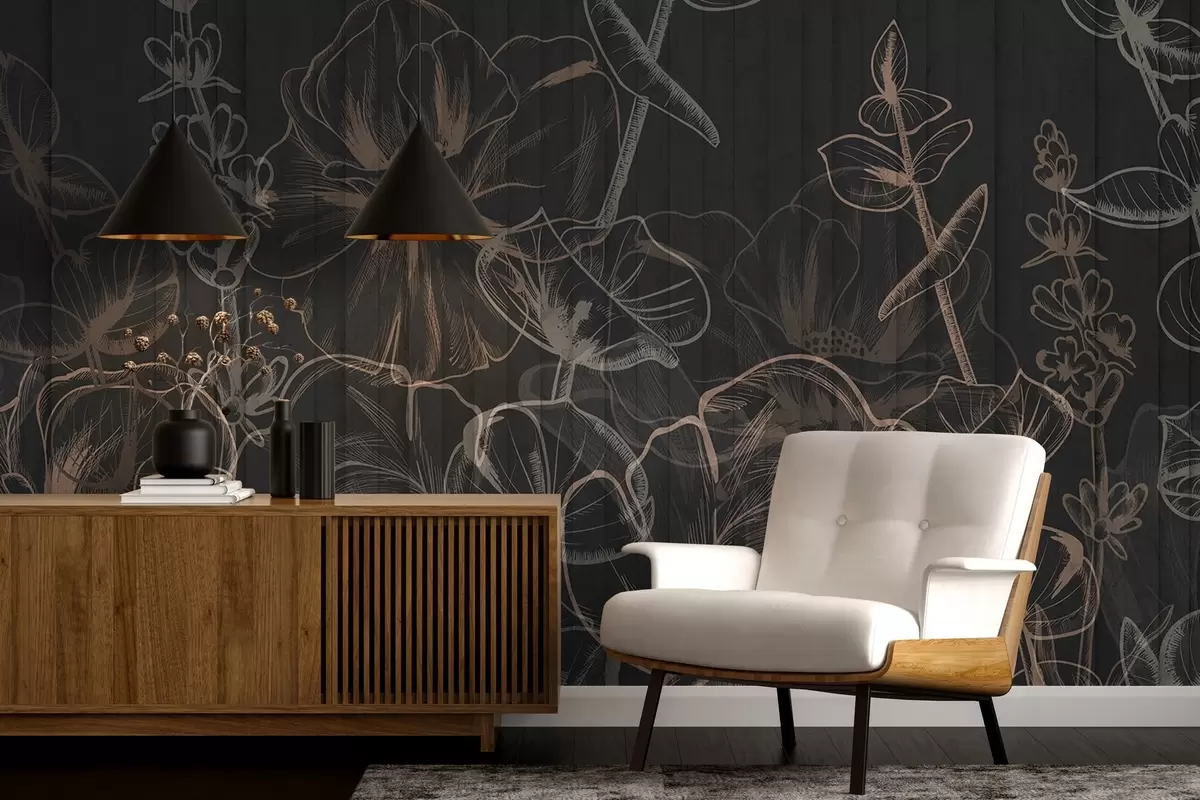 Fototapeten Pflanzensilhouetten auf einem Betonhintergrund Nr. w04327v2
