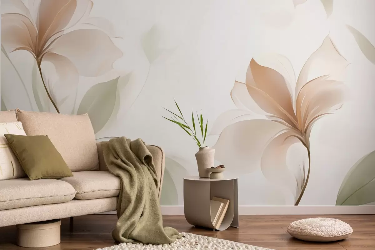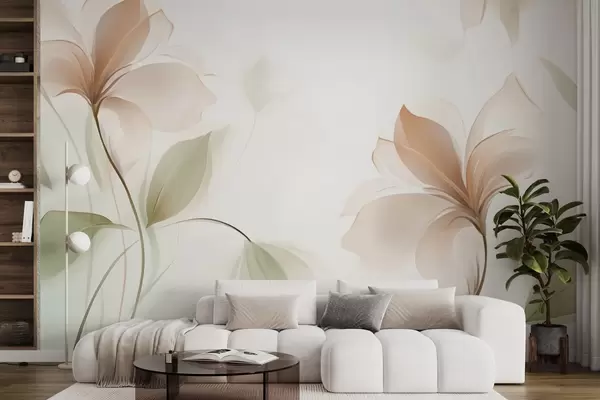 Fototapeten Transparente Blumen in warmen Beige- und Rosatönen Nr. w04397