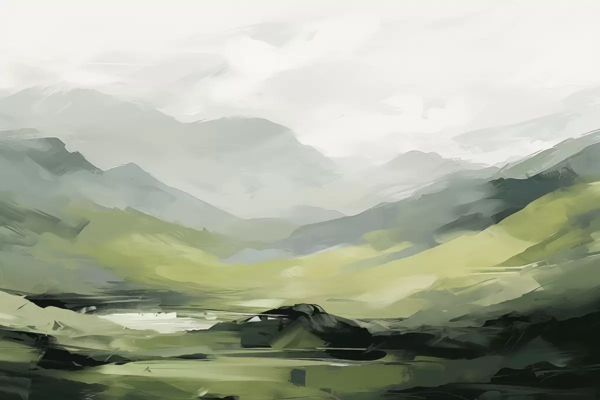 Fototapeten Abstrakte Berglandschaft in Grüntönen Nr. w04447
