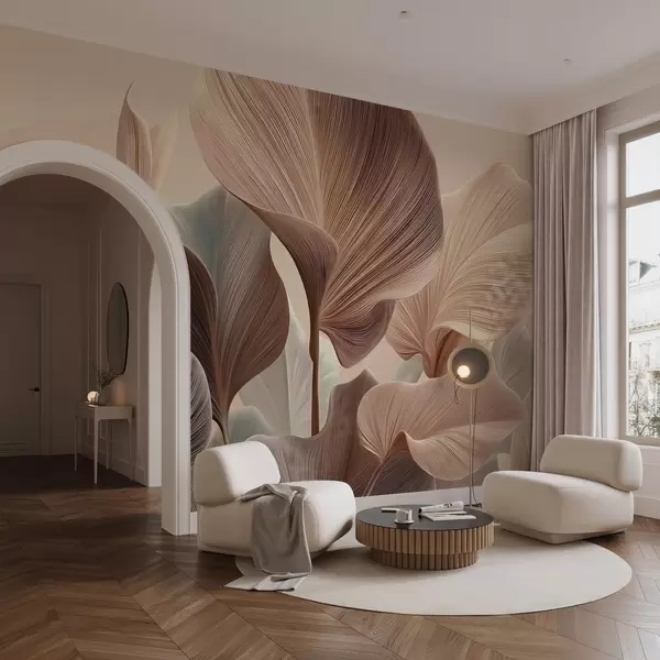 Fototapeten Elegante Blätter in warmen Beigetönen Nr. w04549v1