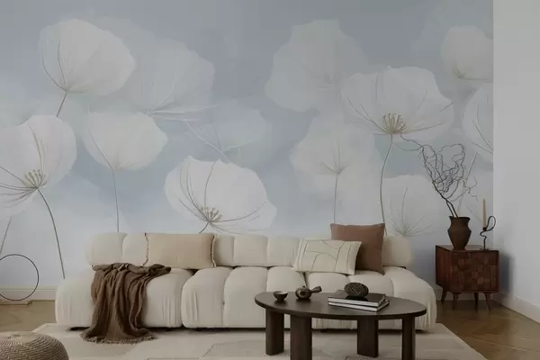 Fototapeten Luftige weiße Blumen auf blauem Hintergrund Nr. w04580