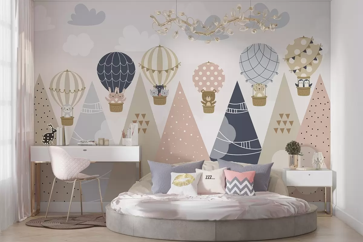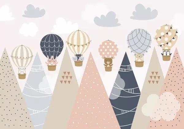 Fototapeten Ballons mit Tieren über den Bergen Nr. w04587