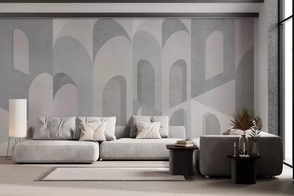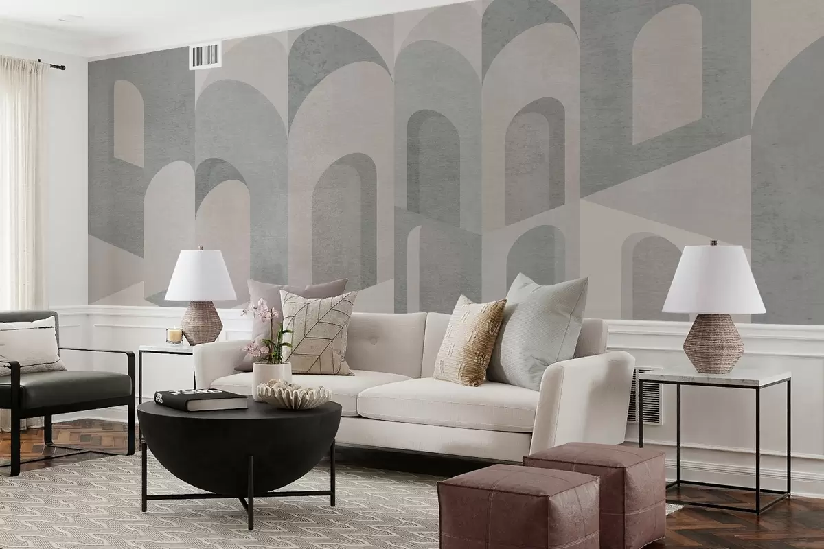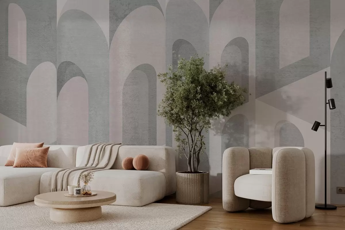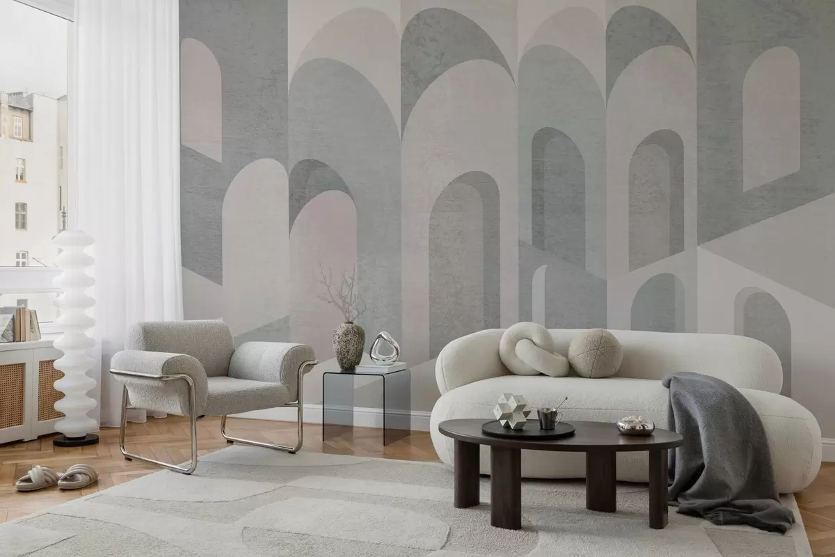 Fototapeten städtische Metamorphosen des Bogens in pudrigen Grautönen Nr. w04812