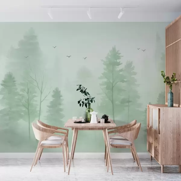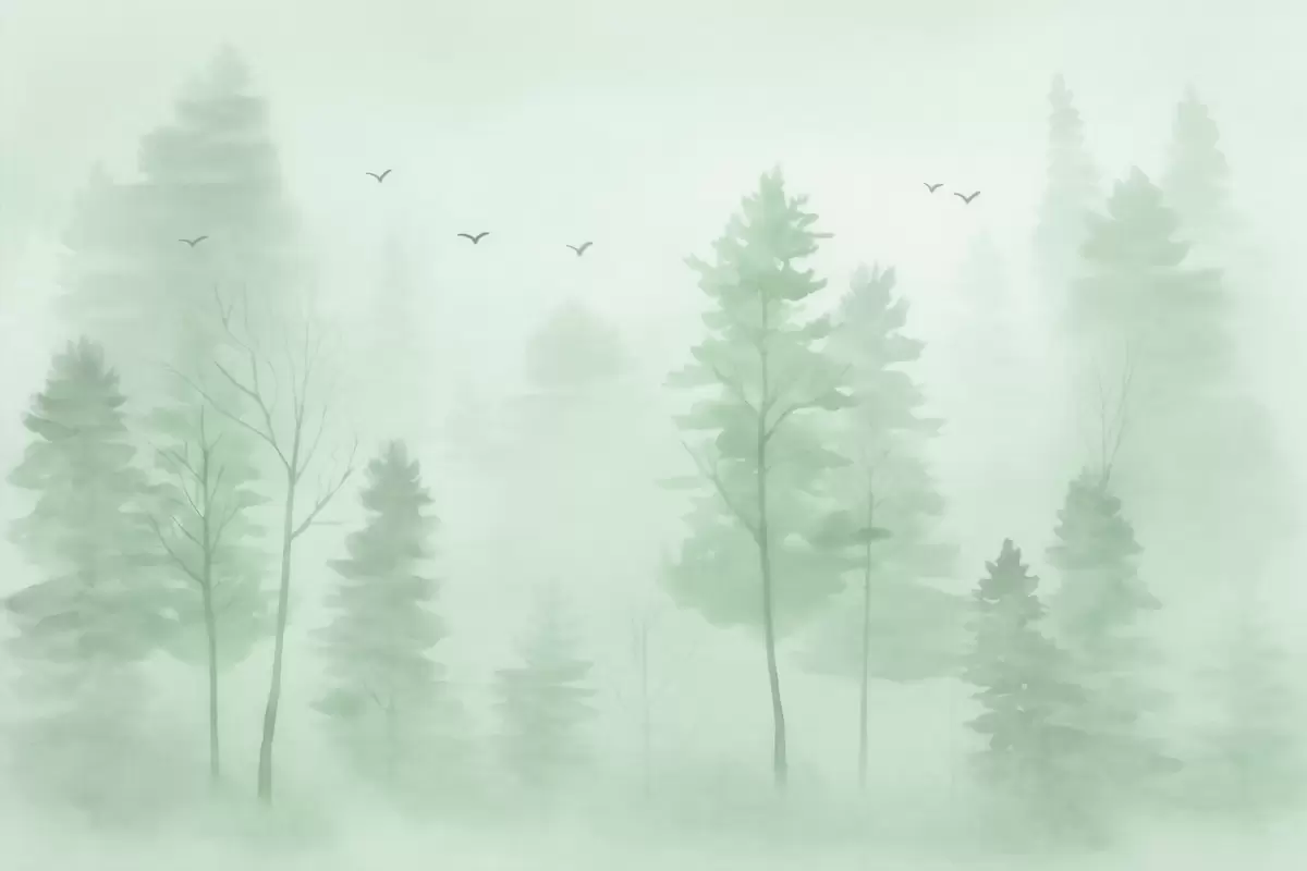 Fototapeten Aquarellartiger Wald aus der Vogelperspektive in Grüntönen Nr. w04872v1