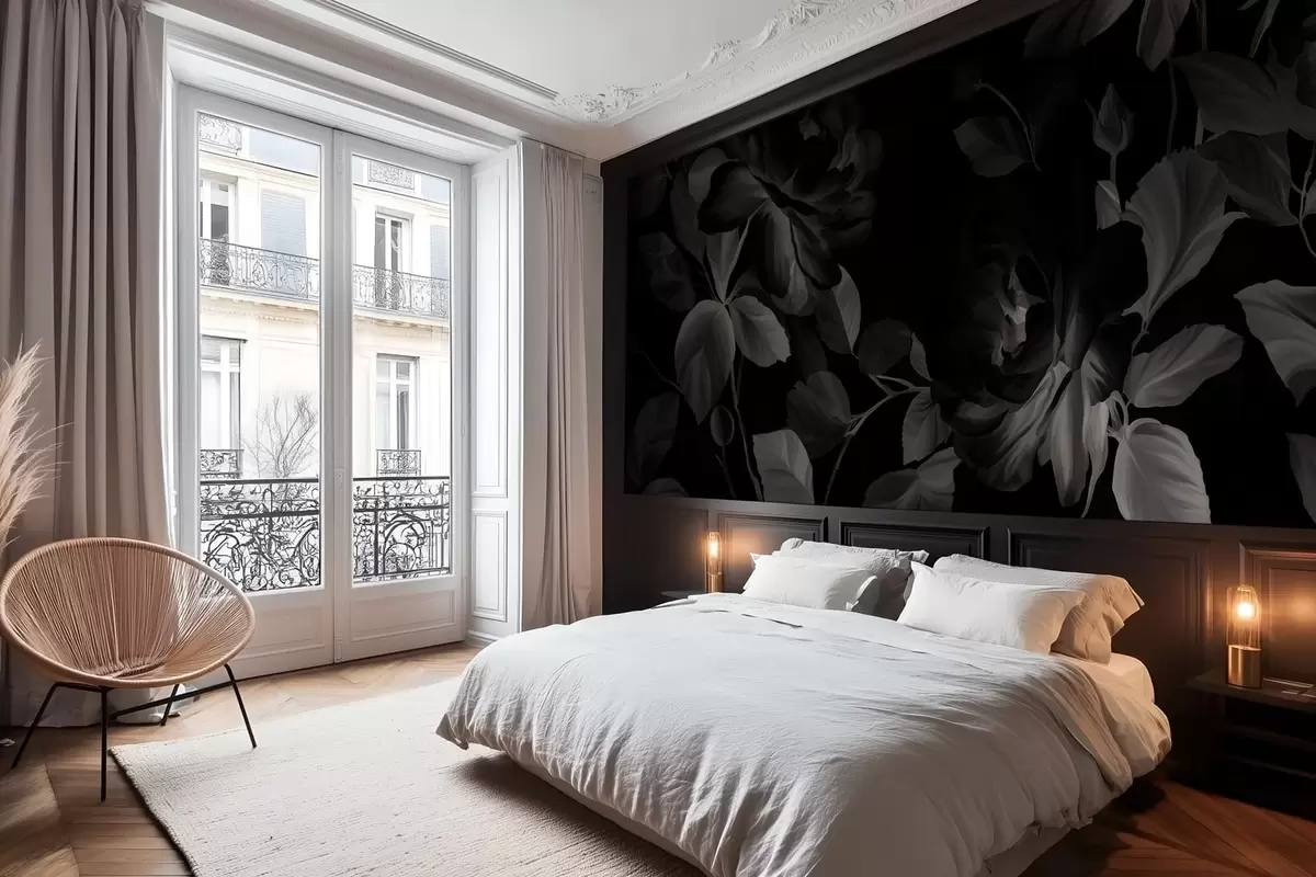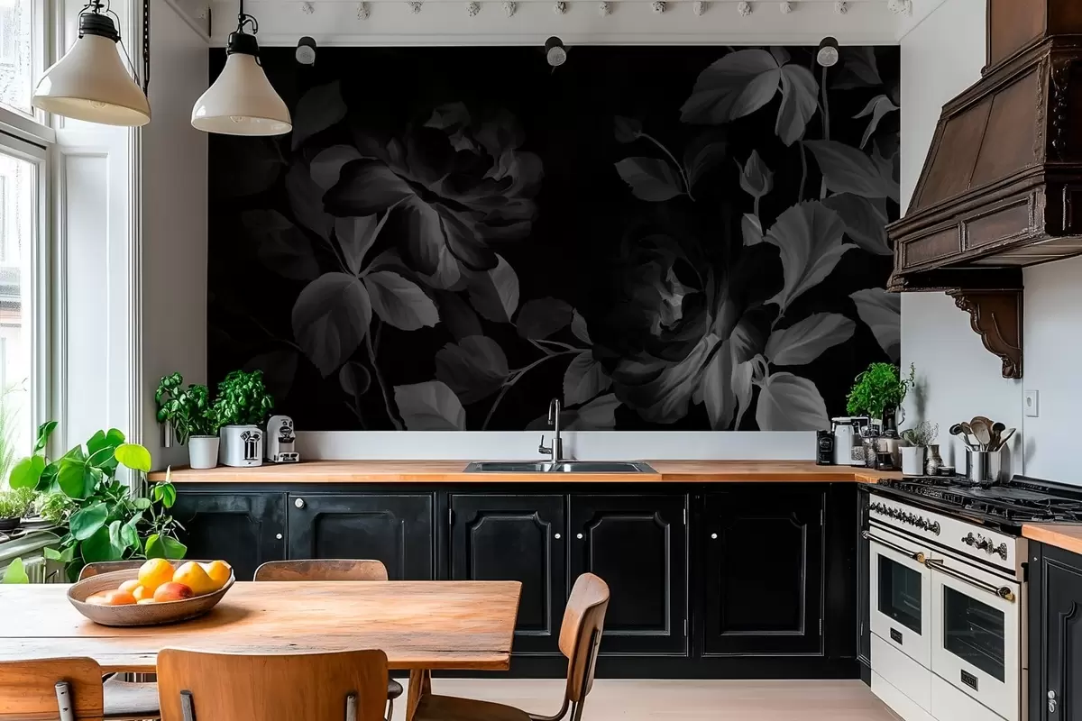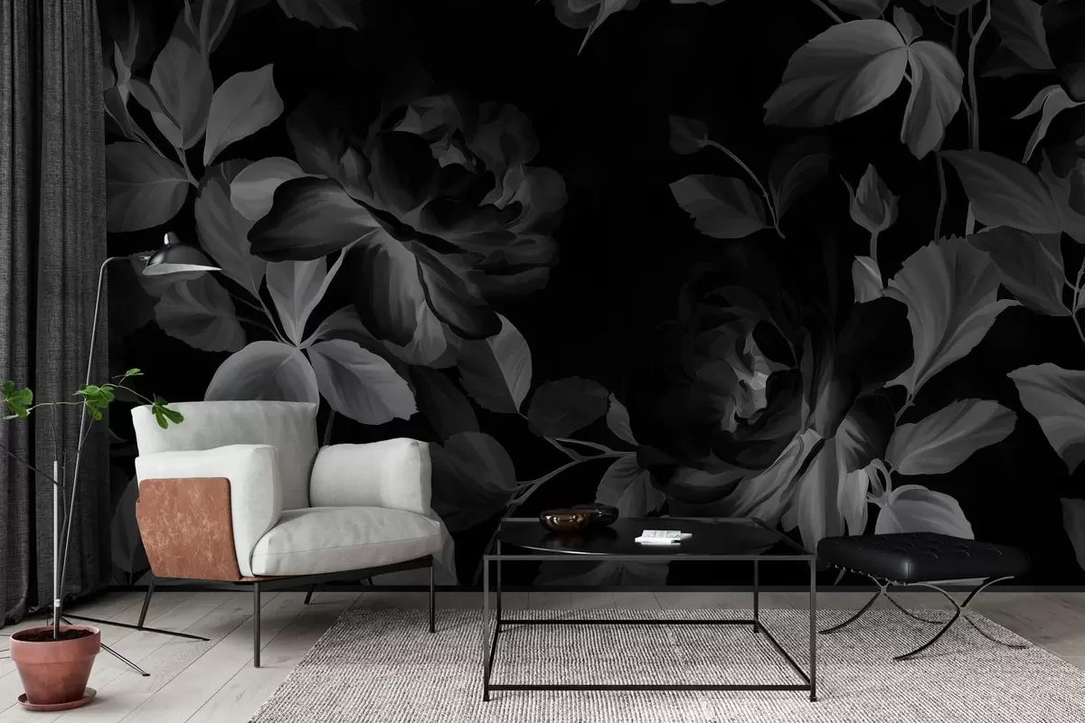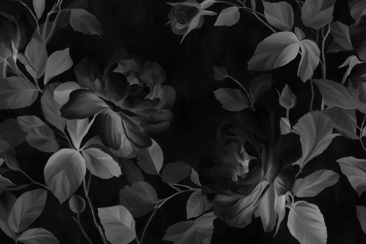 Fototapeten Schwarz-weiße malerische Rosen im Stil eines Ölgemäldes Nr. w04873v1