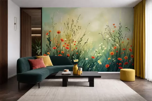 Fototapeten Wiesenblumen und Gräser in sanftem, malerischem Stil Nr. w05015