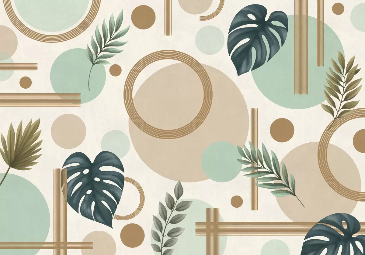 Fototapeten Geometrisches Muster mit Blättern in Grüntönen Nr. w05018v1