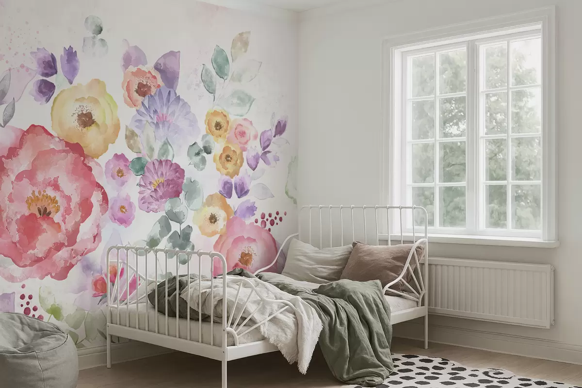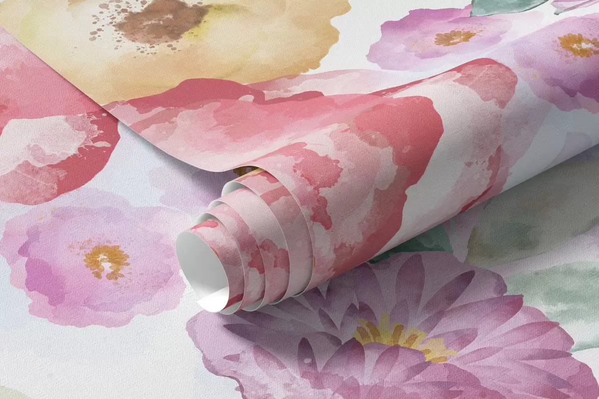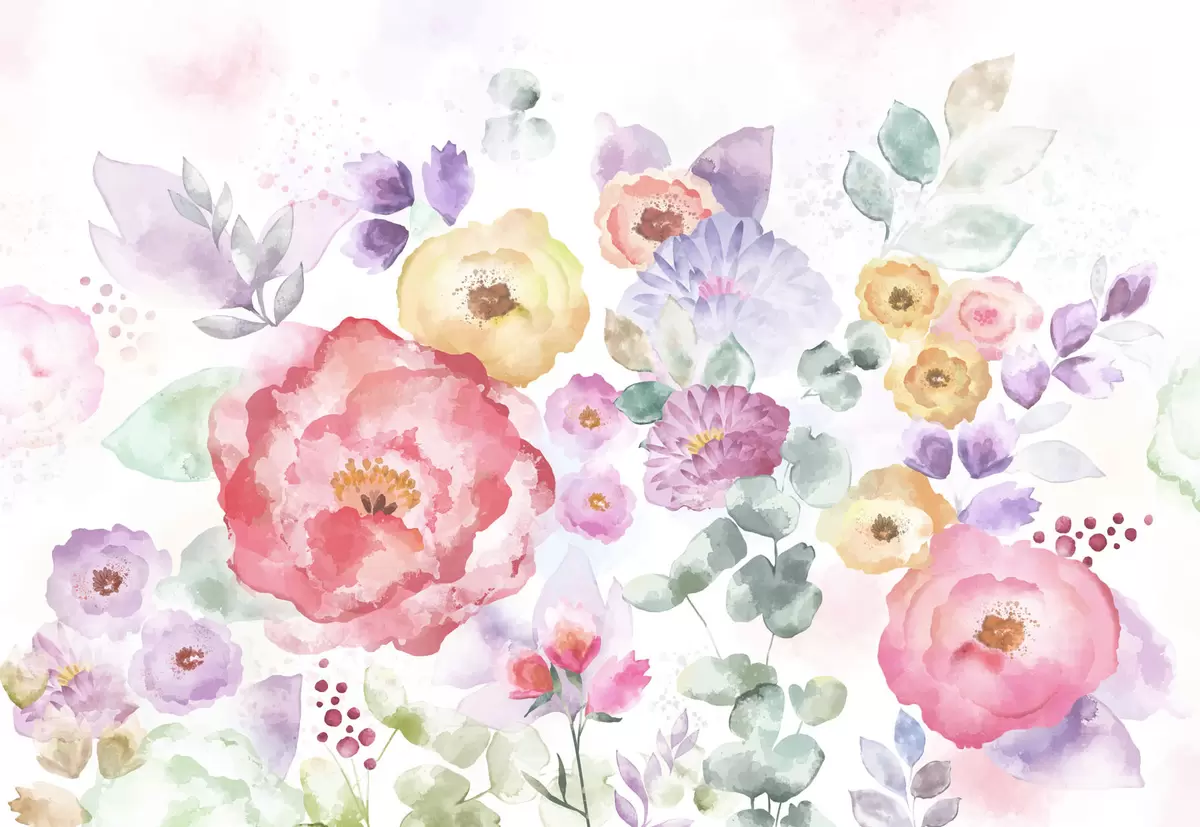 Fototapeten Pastellfarbene Aquarellblumen auf hellem Hintergrund Nr. w05093v1