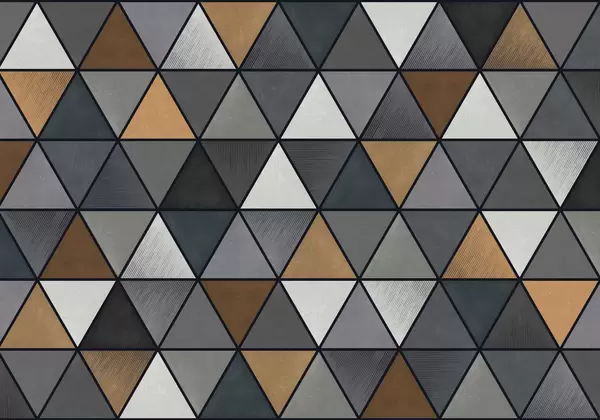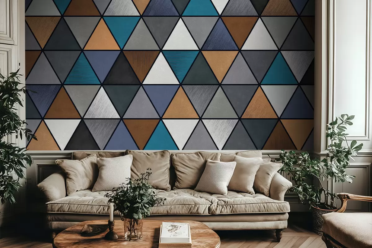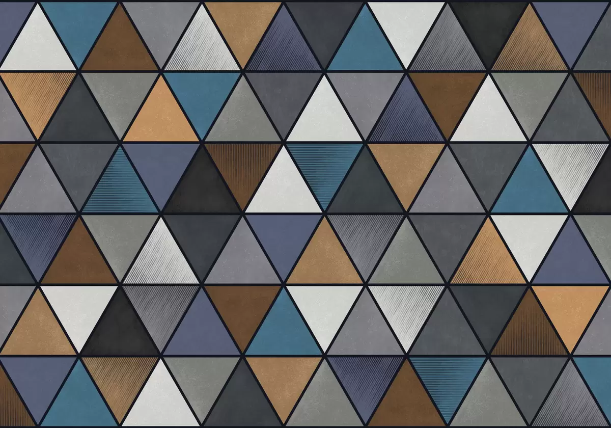 Fototapeten Dreieckiges geometrisches Muster in Blau- und Warmtönen Nr. w05095
