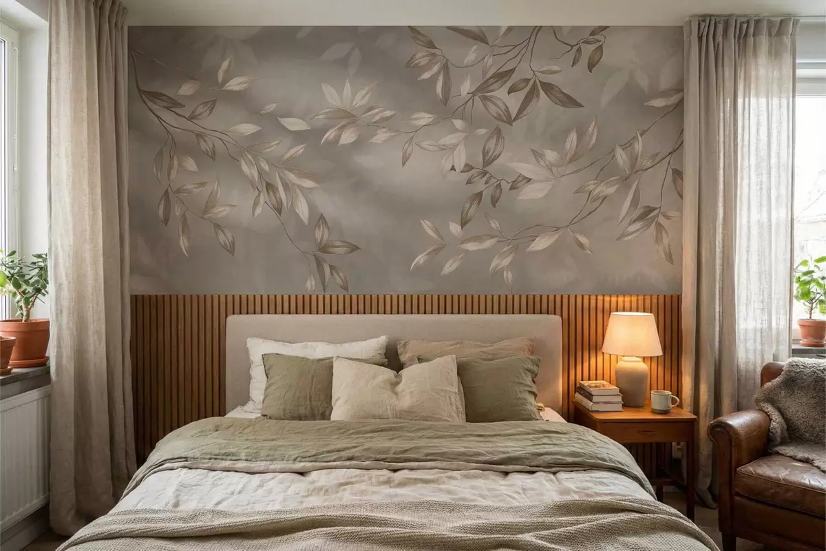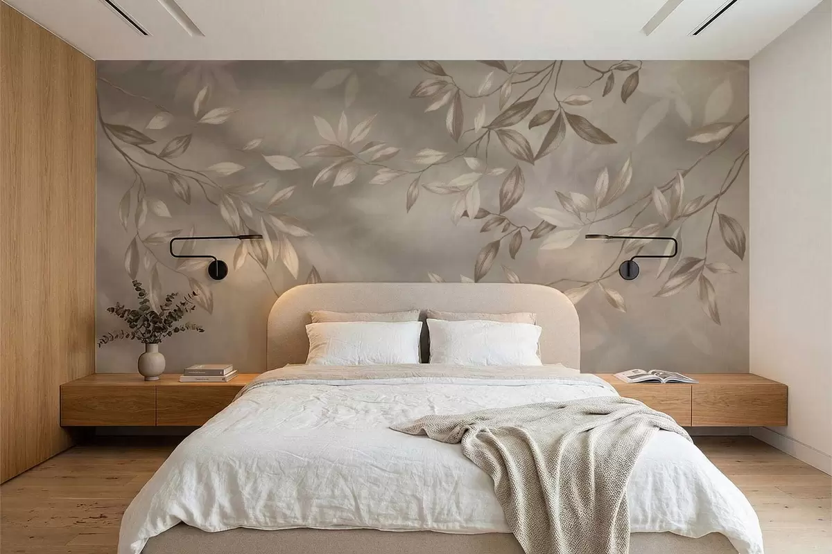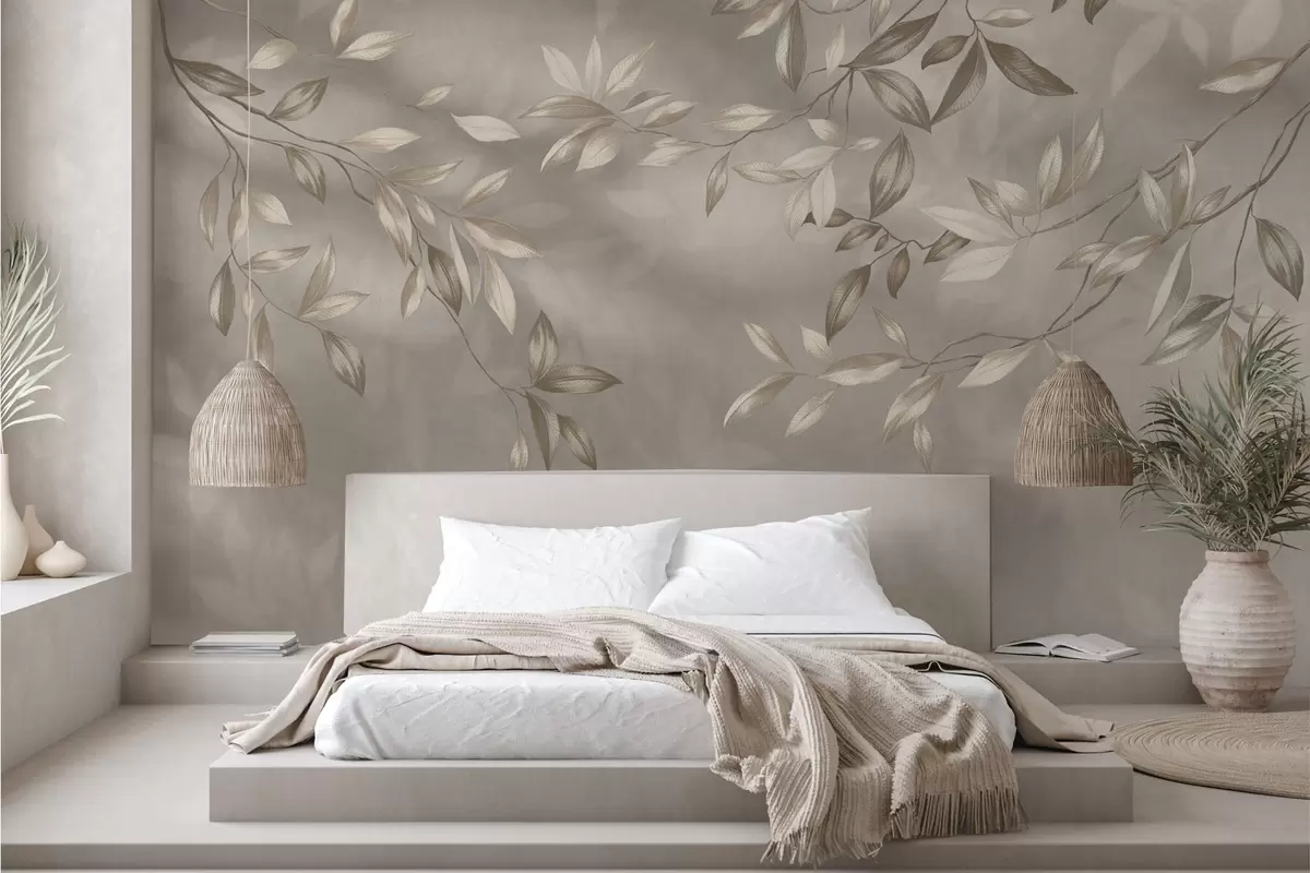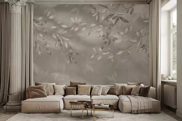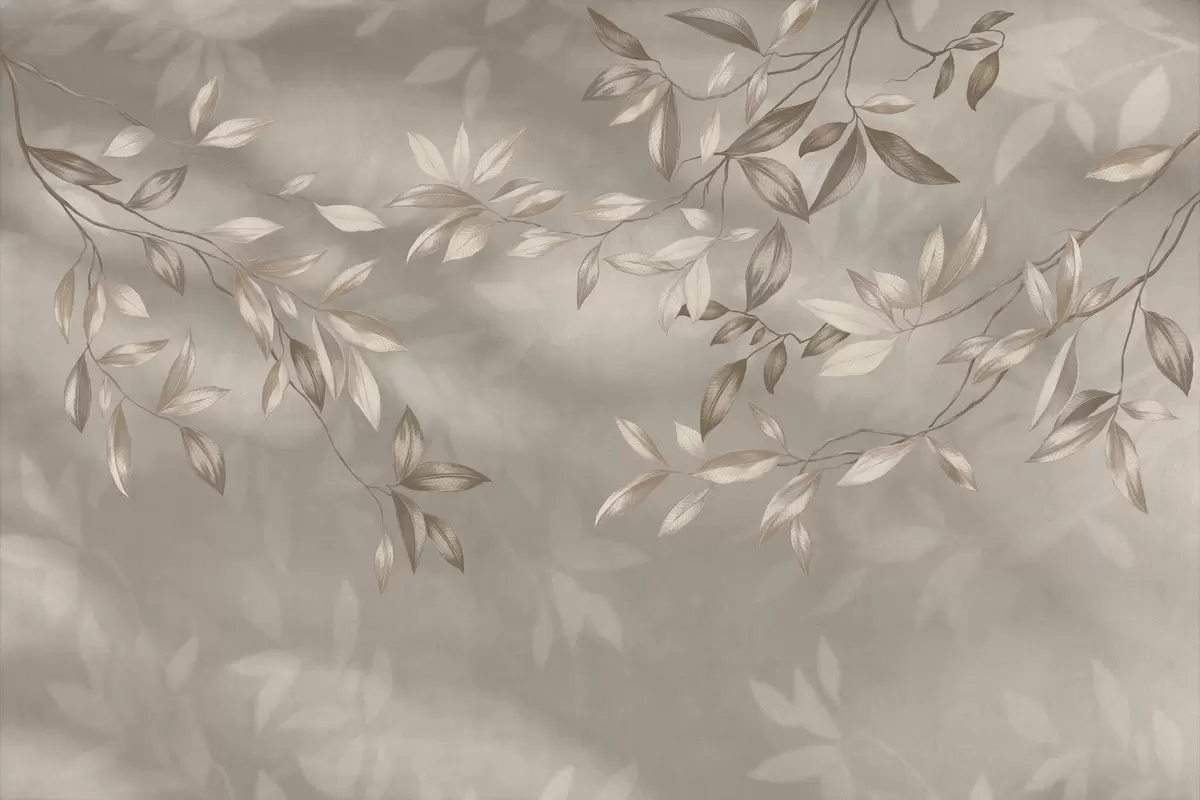 Fototapeten Elegante, grüne Zweige in Beigetönen auf hellem Hintergrund Nr. w05113