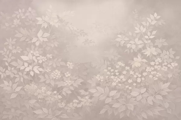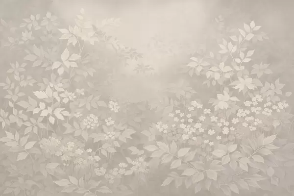 Fototapeten Leichtes botanisches Ornament mit Blättern und kleinen Blüten Nr. w05115